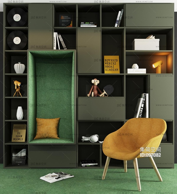 北欧简约书柜,装饰柜 3d模型下载 [模型ID:97082]