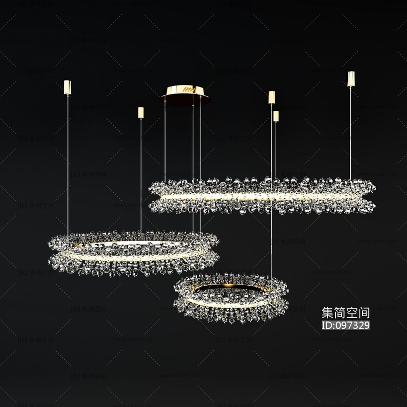 现代金属圆环水晶吊灯 3d模型下载 [模型ID:97329]