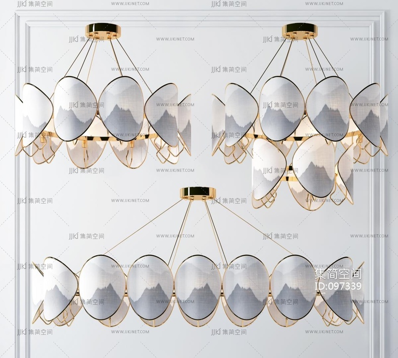 新中式轻奢多头吊灯 3d模型下载 [模型ID:97339]