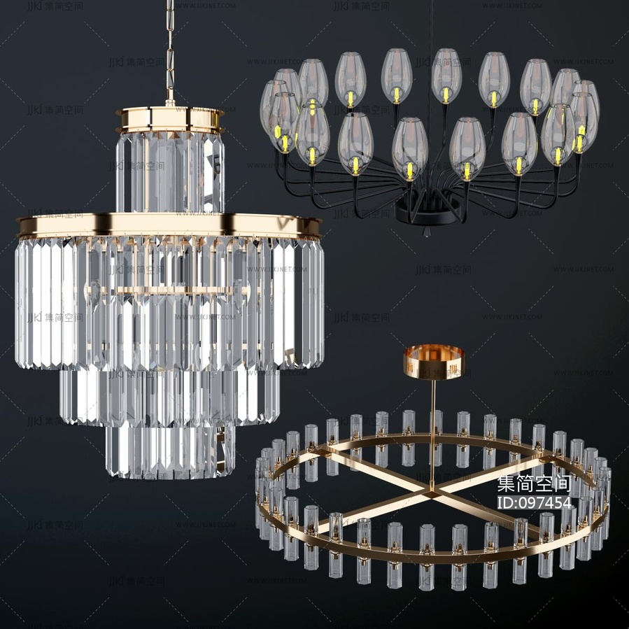 现代水晶灯3d模型下载