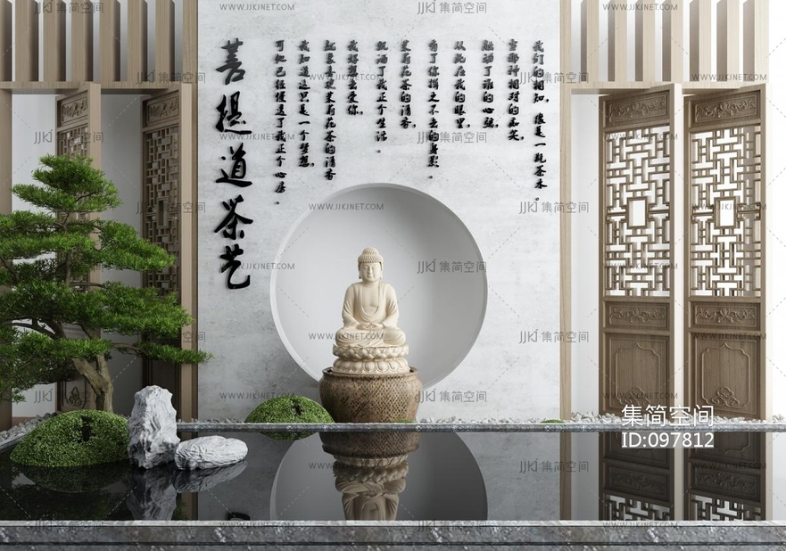 新中式庭院景观小品佛像假山水景 3d模型下载 [模型ID:97812]