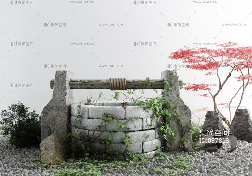 新中式庭院景观小品古井 3d模型下载 [模型ID:97813]