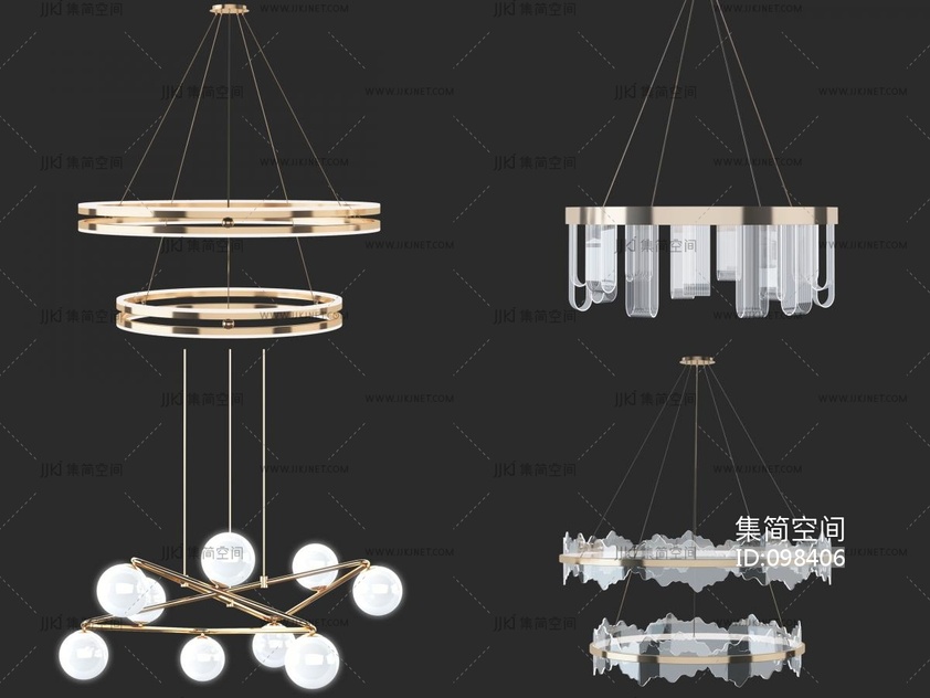 新中式金属圆环吊灯 3d模型下载 [模型ID:98406]