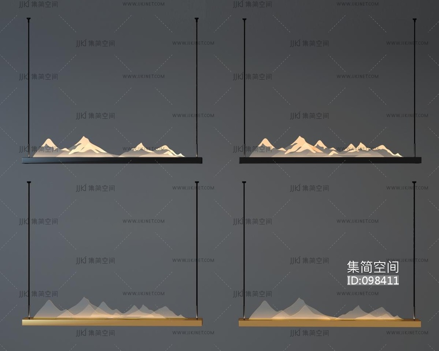 新中式山峦,山脉装饰吊灯 3d模型下载 [模型ID:98411]