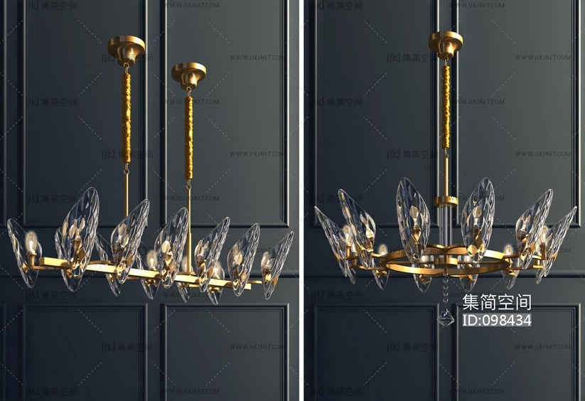 简欧轻奢金属多头吊灯 3d模型下载 [模型ID:98434]