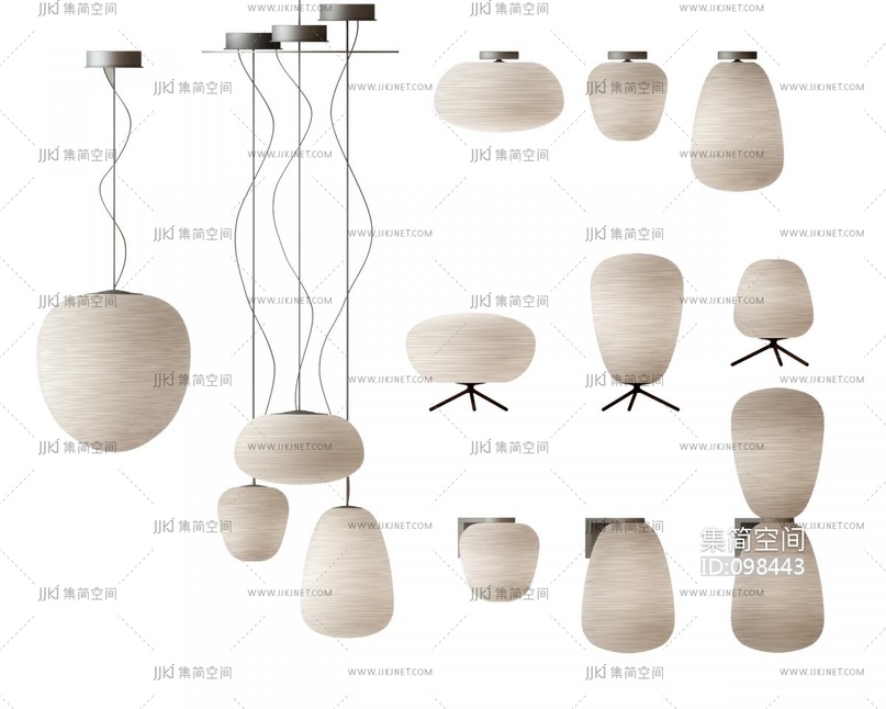 新中式简约吊灯灯笼台灯壁灯组合 3d模型下载 [模型ID:98443]