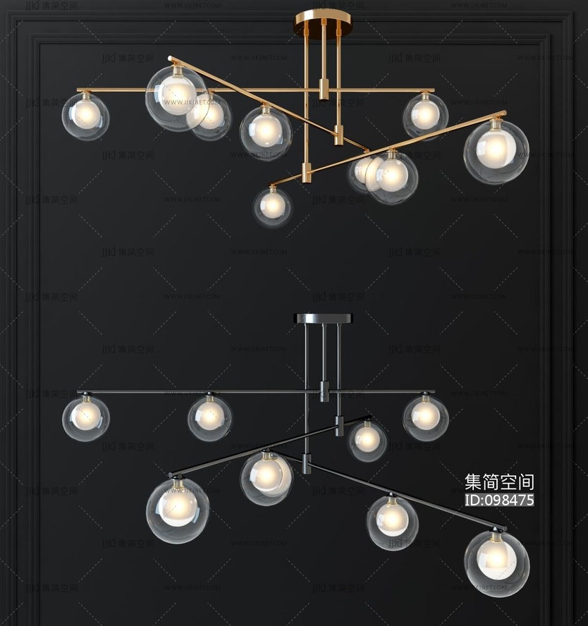 现代金属多头玻璃吊灯 3d模型下载 [模型ID:98475]