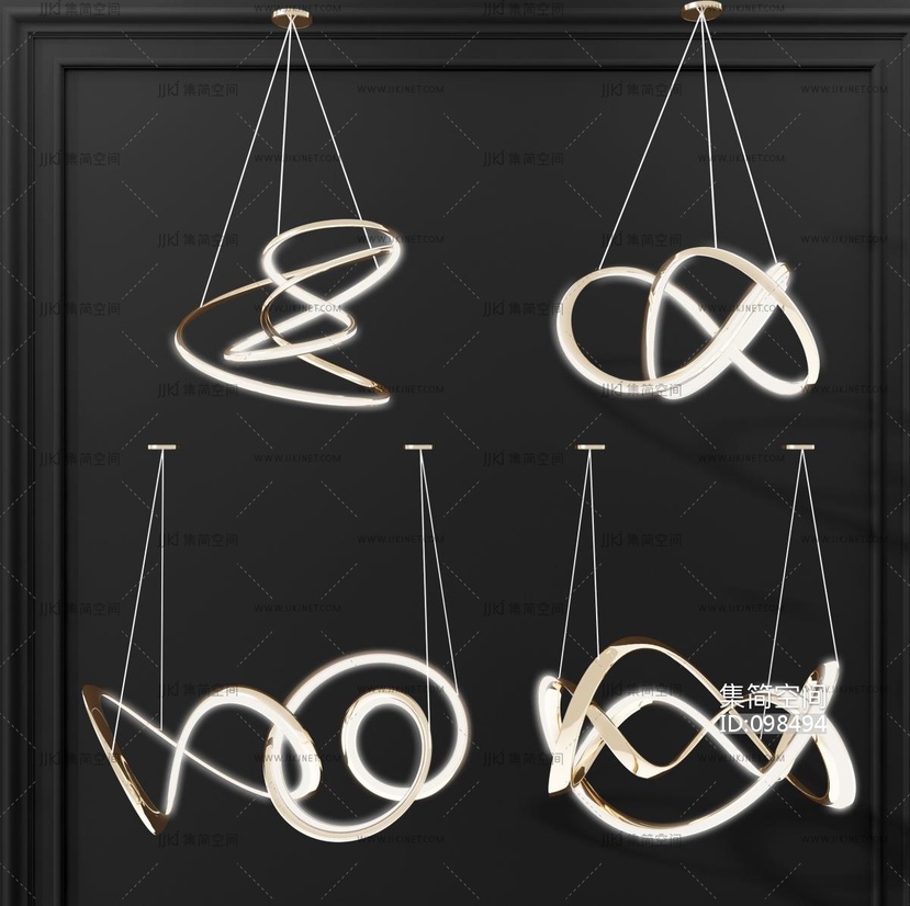 现代金属环形,圆环吊灯 3d模型下载 [模型ID:98494]