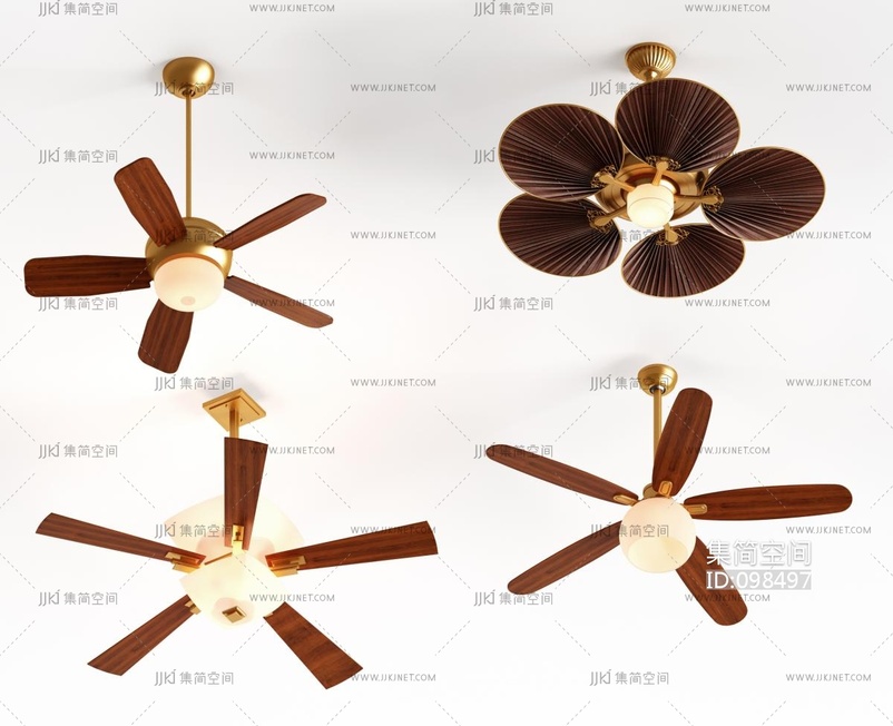 简美金属风扇吊扇灯 3d模型下载 [模型ID:98497]