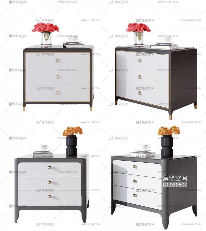 现代方形床头柜组合 3d模型下载 [模型ID:98507]