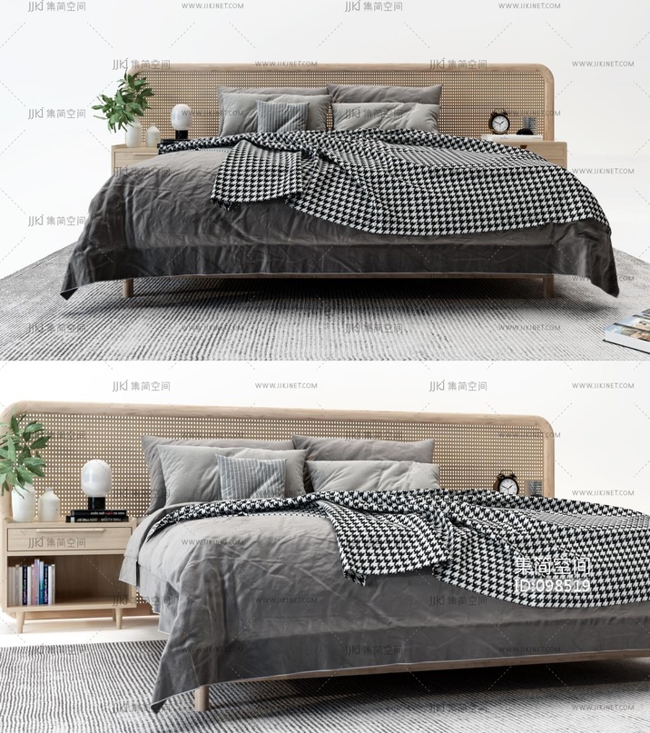 北欧布艺双人床 3d模型下载 [模型ID:98519]