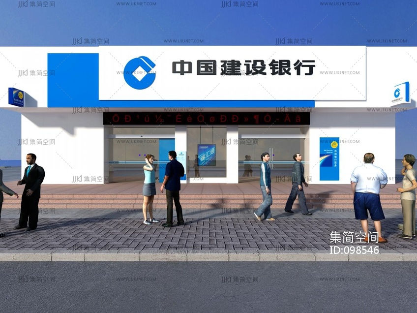 现代建设银行建筑外观24小时自助银行门头 3d模型下载 [模型ID:98546]