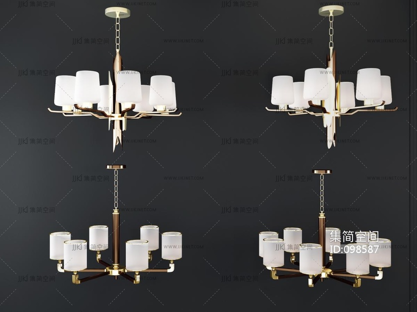 新中式金属多头吊灯 3d模型下载 [模型ID:98587]