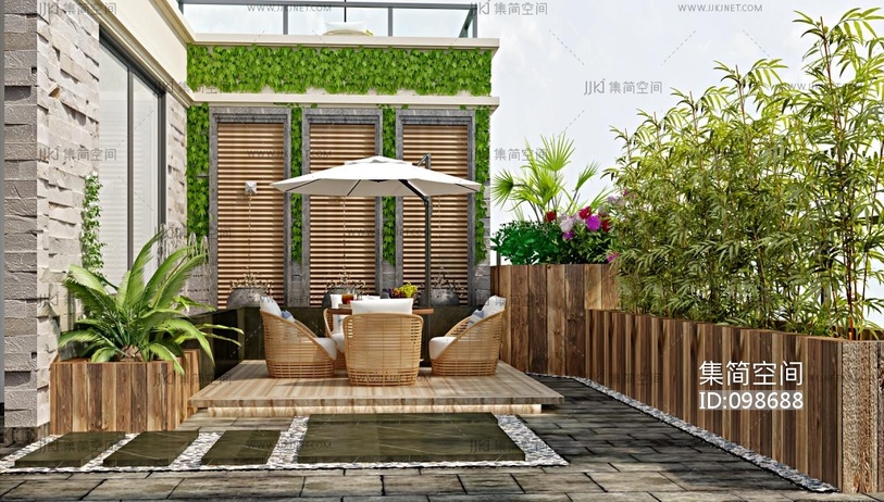 现代露台休息区 3d模型下载 [模型ID:98688]