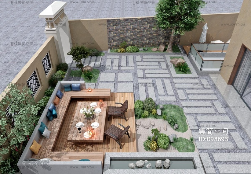现代新中式庭院景观花园 3d模型下载 [模型ID:98693]