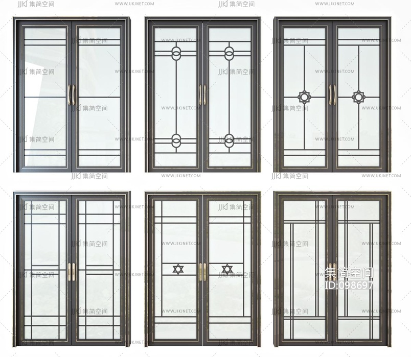 新中式玻璃双开门厨卫门 3d模型下载 [模型ID:98697]