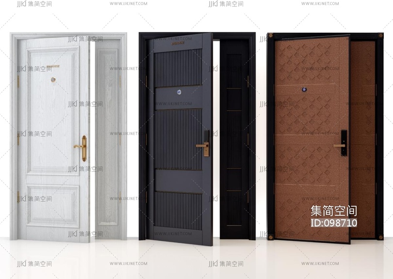 新中式单开门入户门_子母防盗门3D模型3d模型下载