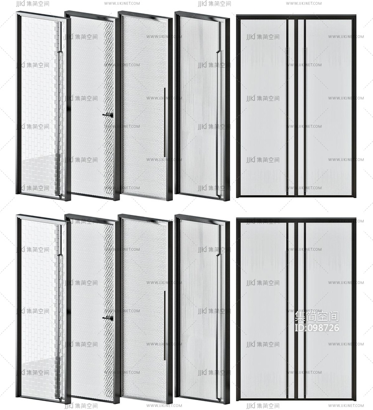现代夹丝玻璃门,推拉门 3d模型下载 [模型ID:98726]