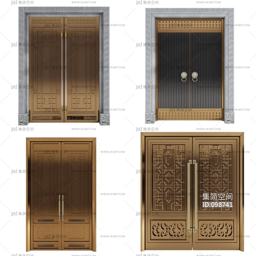 新中式入户雕花大门,雕花门单元门 3d模型下载 [模型ID:98741]