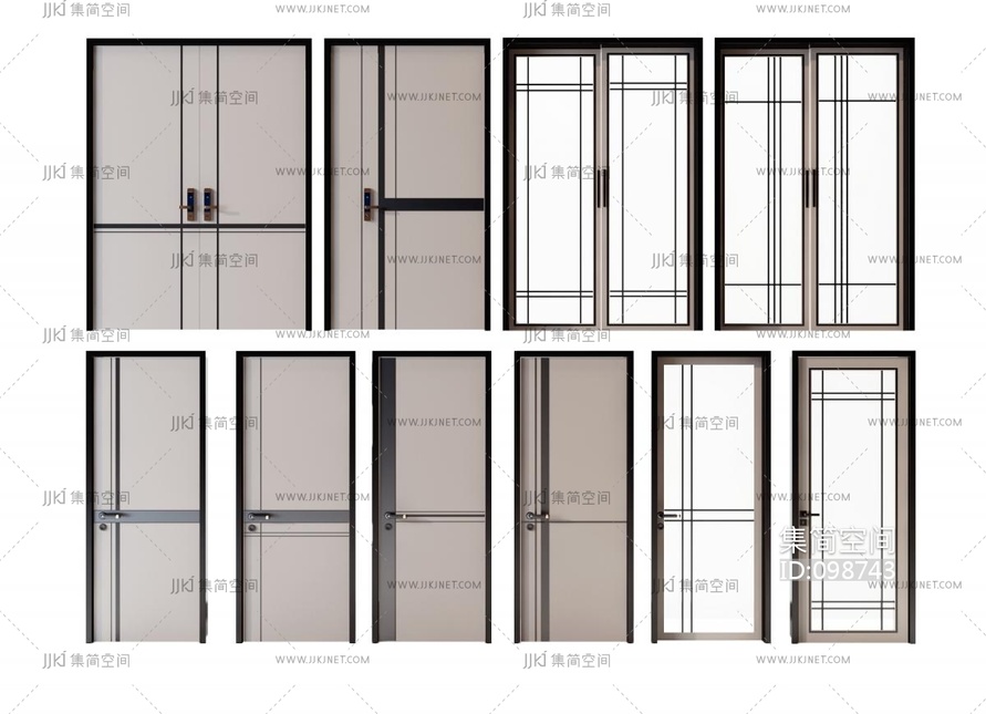 奶油简约双开门_玻璃门_厨房门_阳台门_双开门3D模型3d模型下载