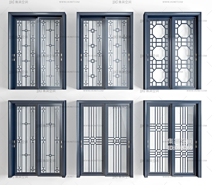 新中式玻璃推拉门 3d模型下载 [模型ID:98769]