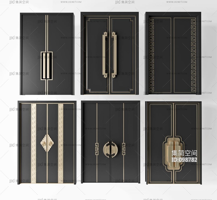 新中式双开门大门,门把手 3d模型下载 [模型ID:98782]