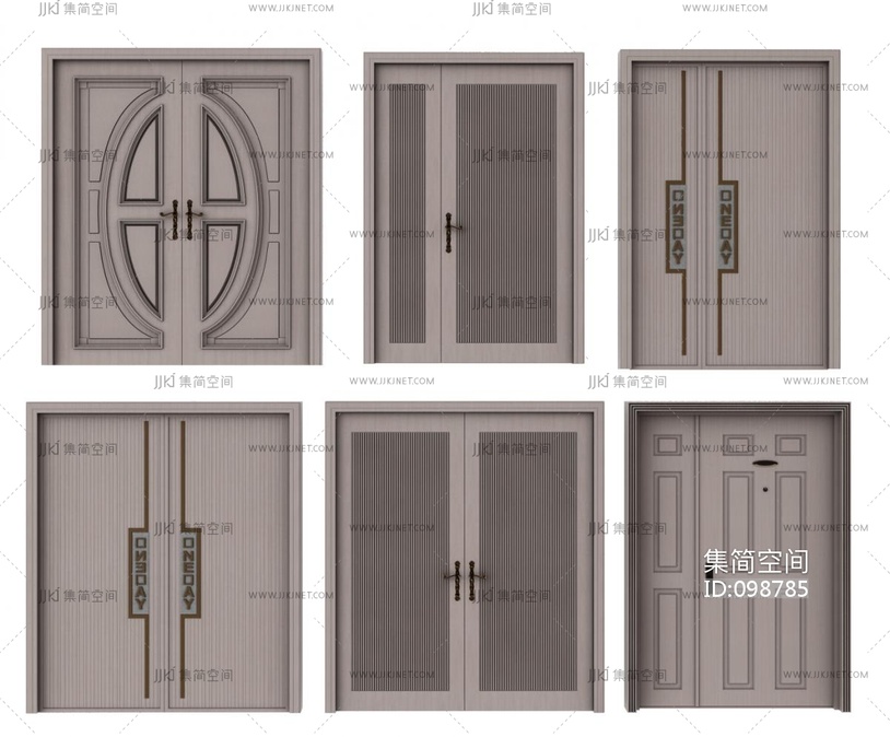现代入户门双开门,字母门 3d模型下载 [模型ID:98785]