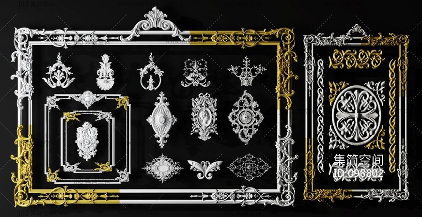 欧式法式石膏雕花线条,护墙板 3d模型下载 [模型ID:98802]