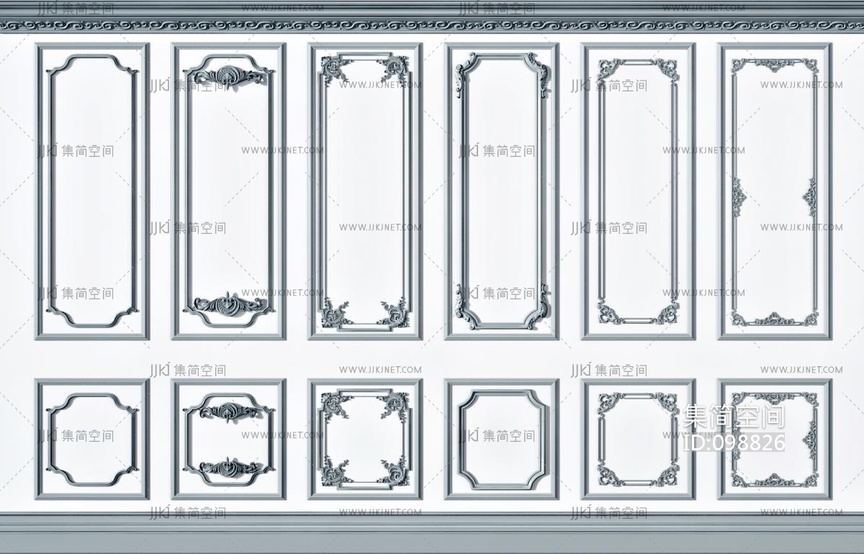 欧式法式雕花线条,石膏线条,护墙板 3d模型下载 [模型ID:98826]