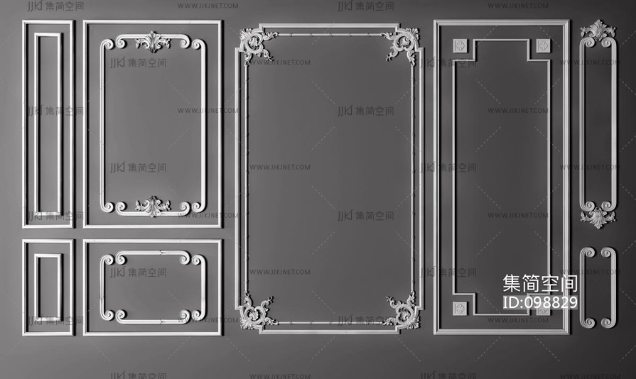 欧式法式雕花线条,石膏线条,护墙板 3d模型下载 [模型ID:98829]