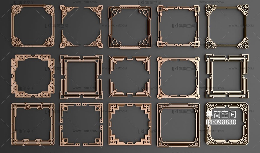 新中式角花角线花格,花线圈边波打线 3d模型下载 [模型ID:98830]