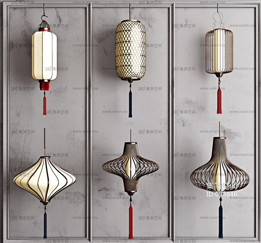 新中式灯笼吊灯 3d模型下载 [模型ID:98846]