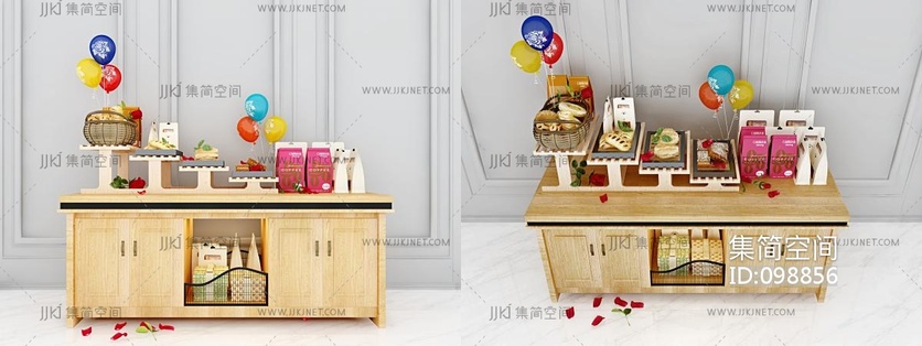 北欧原木蛋糕面包展柜 3d模型下载 [模型ID:98856]