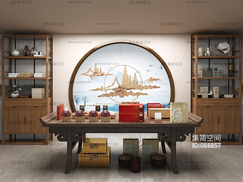 中式实木展台展柜,装饰柜书柜组合 3d模型下载 [模型ID:98857]