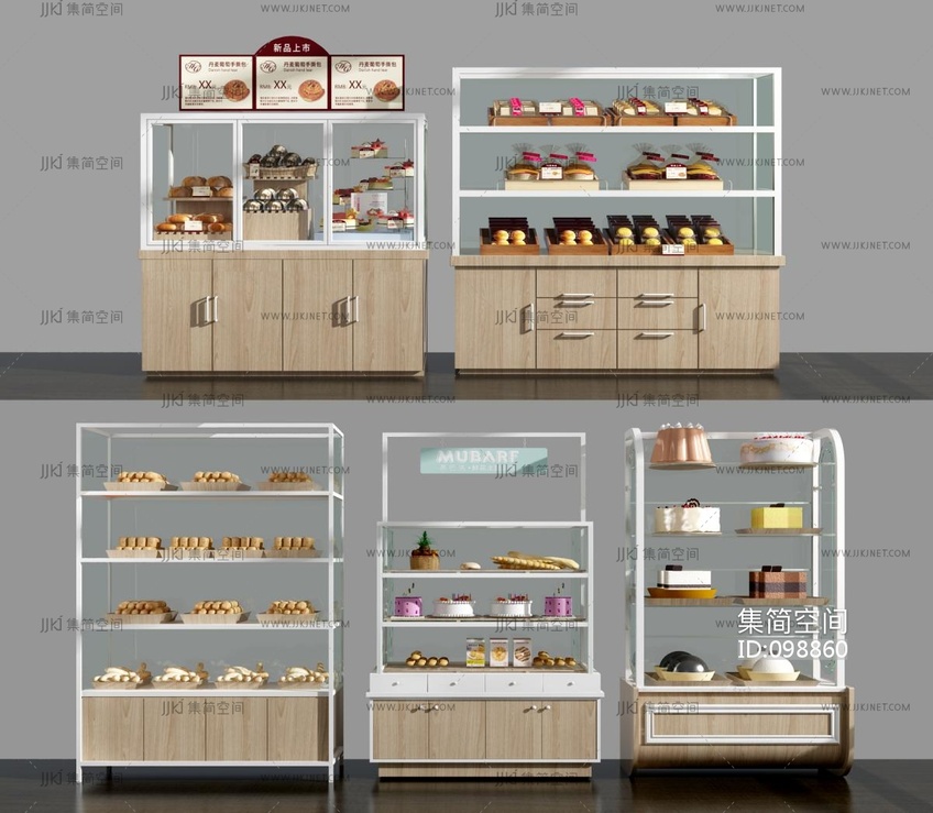 现代蛋糕柜面包糕点糕点展柜,货架,货柜展柜 3d模型下载 [模型ID:98860]