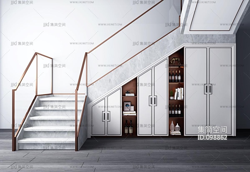 新中式玻璃楼梯储物柜 3d模型下载 [模型ID:98862]