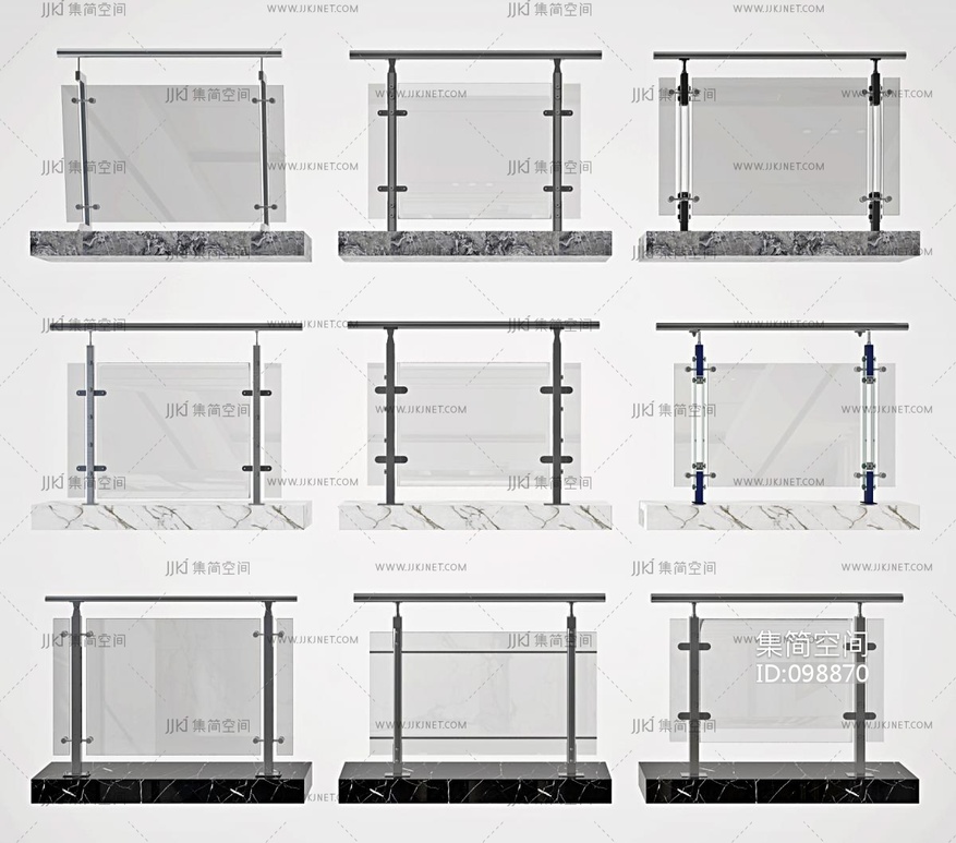 现代玻璃护栏拦河,栏杆 3d模型下载 [模型ID:98870]