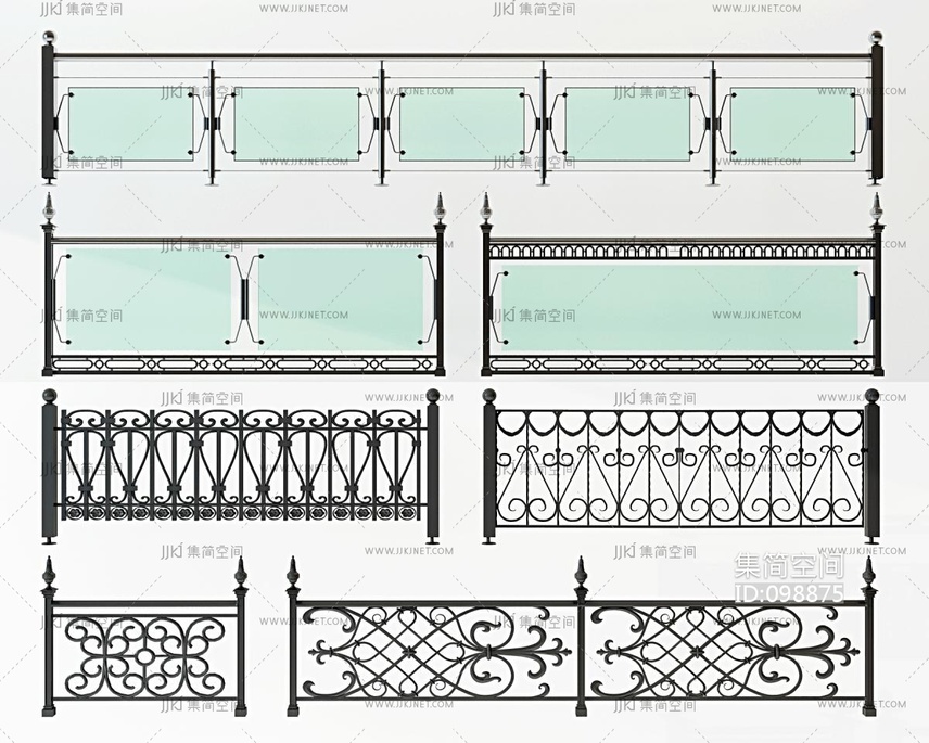 现代欧式美式铁艺栏杆扶手 3d模型下载 [模型ID:98875]