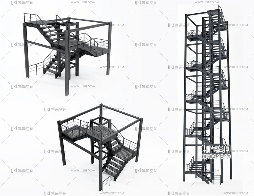 工业风铁艺钢架楼梯 3d模型下载 [模型ID:98880]