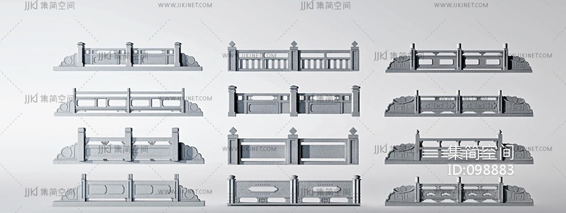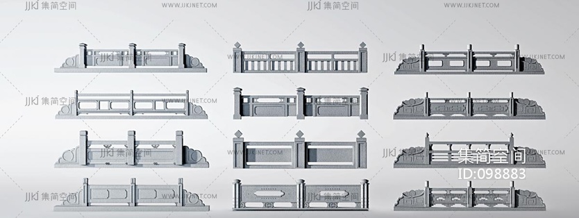 新中式户外围栏护栏,玉石栏杆,桥 3d模型下载 [模型ID:98883]