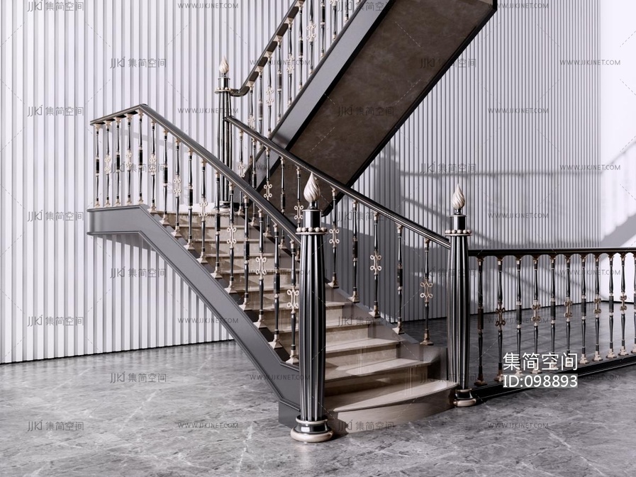 简欧,欧式法式描金栏杆楼梯 3d模型下载 [模型ID:98893]