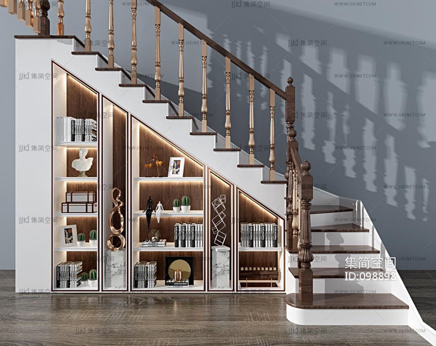 简欧,美式实木楼梯 3d模型下载 [模型ID:98898]