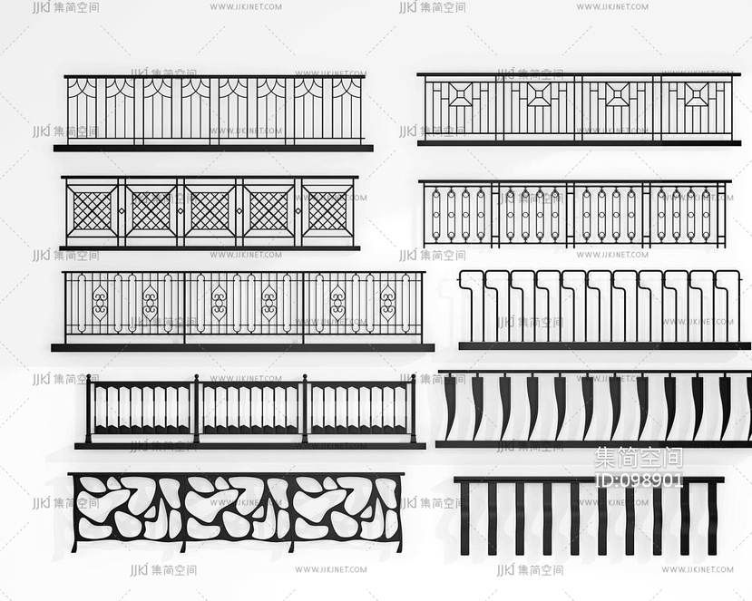 简欧新中式欧式铁艺楼梯栏杆护栏 3d模型下载 [模型ID:98901]