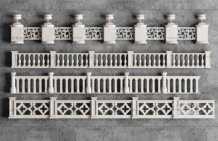 欧式石材栏杆护栏 3d模型下载 [模型ID:98907]
