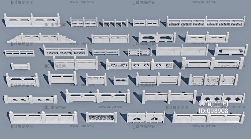 中式大理石,玉石栏杆,护栏, 3d模型下载 [模型ID:98908]