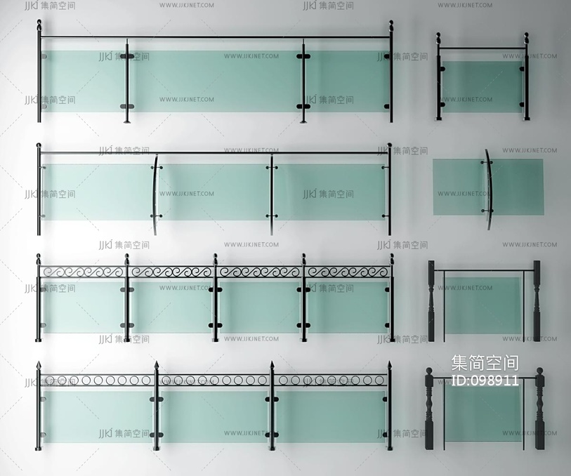 现代玻璃扶手栏杆 3d模型下载 [模型ID:98911]