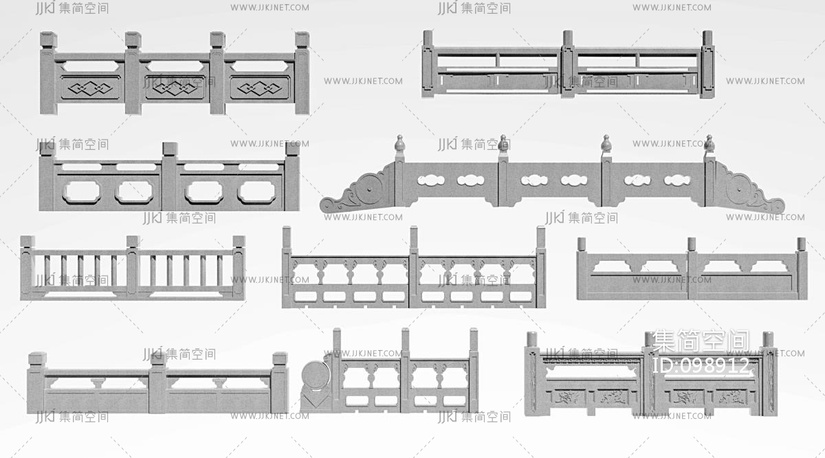 中式麻石玉石石材栏杆桥 3d模型下载 [模型ID:98912]