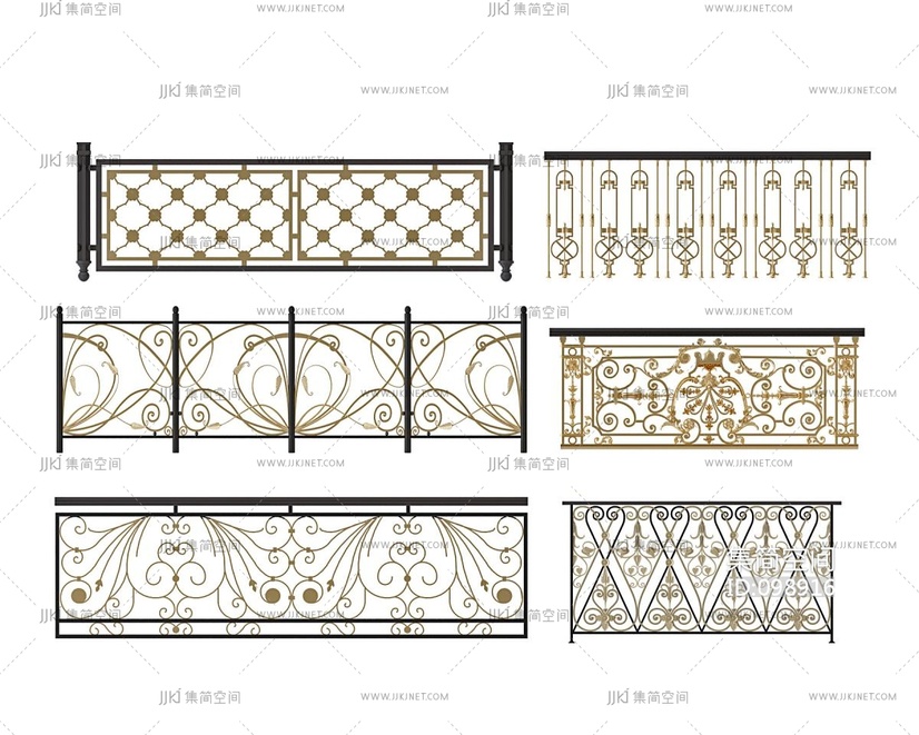 欧式金属雕花铁艺楼梯栏杆,护栏 3d模型下载 [模型ID:98916]