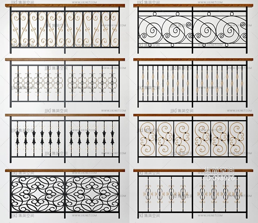 欧式新中式铁艺栏杆,护栏 3d模型下载 [模型ID:98926]
