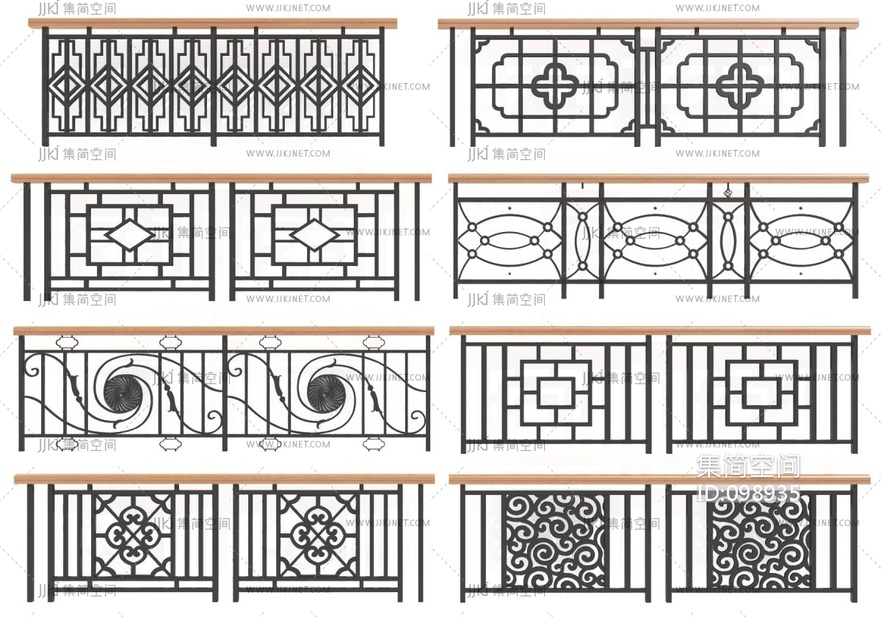 新中式楼梯铁艺栏杆围栏扶手护栏 3d模型下载 [模型ID:98935]